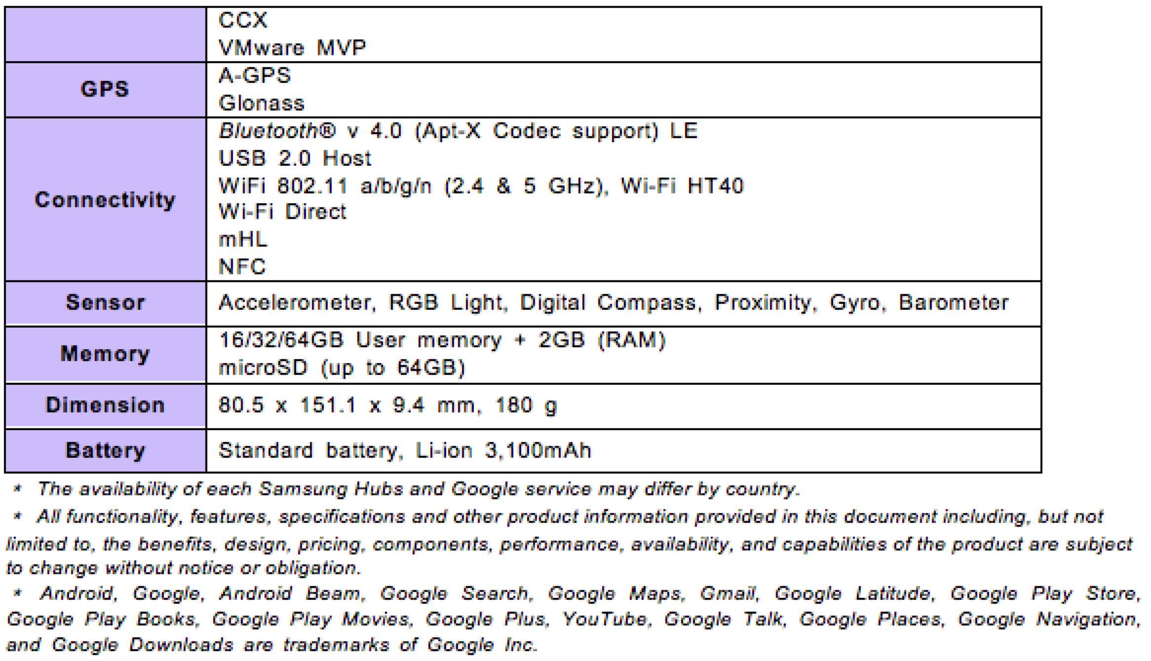 In fact, it's 9.4mm thick and 180g, and bears more than a passing resemblance to the Galaxy S III. Two color versions will be offered – marble white and titanium grey – and three storage models, 16/32/64GB. The screen, an HD Super AMOLED, has lost a few pixels in width – it's now 1280 x 720 rather than 1280 x 800 – but the battery has gained capacity, now up to 3,100 mAh and, Samsung told us, charges more quickly and lasts for longer than on the Note. Connectivity will likely include various 4G models, along with NFC, WiFi and Bluetooth.