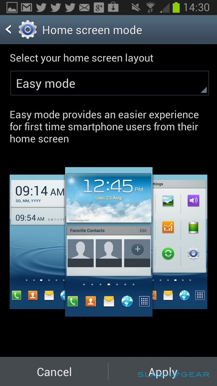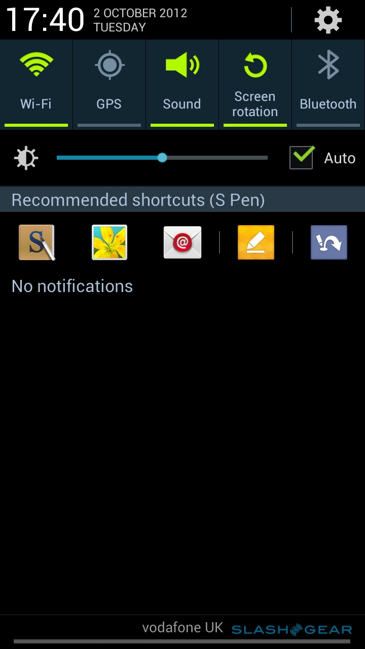 Jelly Bean's other improvements are included too. There's Project Butter behind the scenes, keeping the interface moving slickly, and the Note II did indeed keep up with every swipe. If we ever had any hiccups it was usually down to the sheer size of the display; swiping an unwanted notification from the drop-down menu, for instance (now with a handy preview of the content of new messages) required just a little bit more of a flick than we would do by default, meaning it would sometimes take a couple of tries before it disappeared. Given time, though, we'd expect to get used to that.