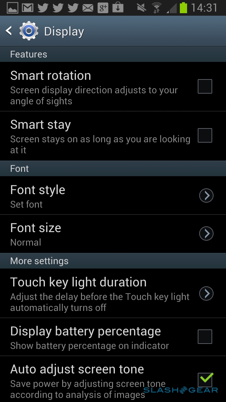 There's more to the screen change than the size and resolution, however. Samsung has thrown out the contentious PenTile panel of before, maligned for its surfeit of green pixels, and replaced it with a brand new pixel layout that gets a step closer to true RGB. The end result is a far more balanced display that looks incredibly good: bright and color-rich, with the syrupy blacks we're used to, and a crispness to text that's distinctly better than what the first Note could manage. Samsung's default color temperature remains more saturated than we'd like, but you can easily tweak that between four presets – dynamic, standard, natural, and movie – in the settings.