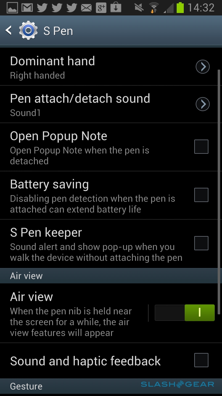 For the new Note II, the stylus itself has had an overhaul. It's now thicker and longer than the previous version (though still fits snugly inside the body of the phone) and the tip has a new coating that's kinder to the screen and feels more like a ballpoint pen when you're writing. The difference in barrel width does make a difference to comfort, now less like pinching a pen refill between your fingertips, though the button on the side – which can be used to call up sub-menus of commands, app depending – still takes a little getting used to.