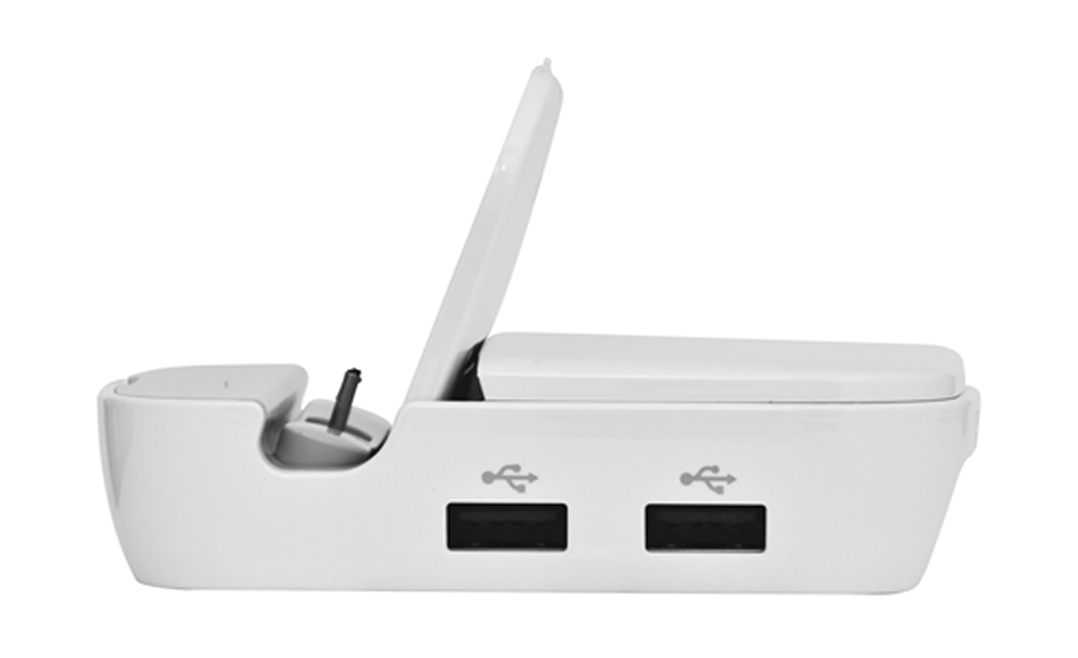 There's also a 3.5mm stereo audio output, for hooking up a set of speakers, and a microUSB input for charging the phone and powering the Smart Dock itself. The Note II can be used as normal when docked in place – including for making phone calls – and if you've a flip cover fitted you won't need to remove it in order to slot it in.