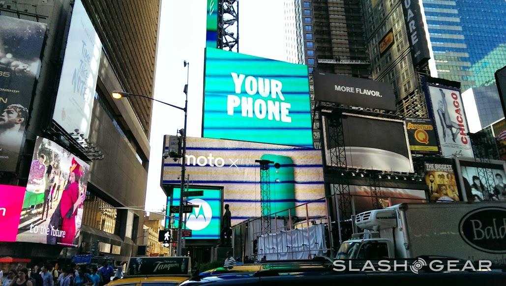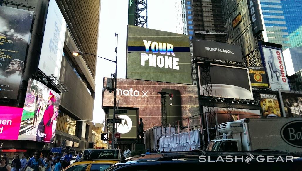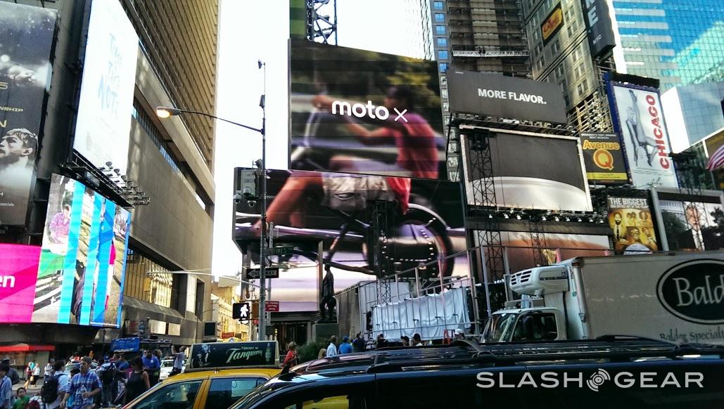 This public showing is also – interestingly enough – set to take place near a massive Motorola Moto X video billboard. It seems that it's no mistake that Google and/or Motorola decided to rent space from the billboard from American Eagle the same week Samsung was set to have an event directly below. The billboard currently shows American Eagle, The Ellen DeGeneres Show, and Moto X advertisements one after the other.