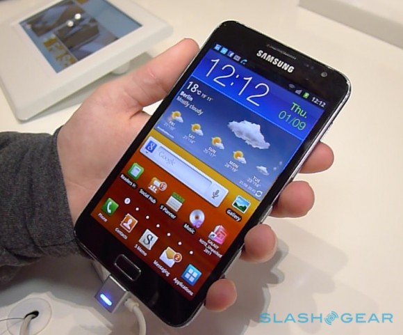 Samsung presents this next-generation device whom they've dubbed the king of the new size, that being a perfect point between tablet and smartphone. This device has, again, the same resolution display as the Galaxy Tab 7.7, but it's got a 5.3-inch panel displaying it so it's much more sharp and brilliant. You've also got a pen stylus that's able to sit inside the device while you're not using it, a "silo" if you will for convenient carrying on the go. This device represents a new generation, if Samsung has their way, and has the potential to swallow up a market that hasn't yet even really been addressed anywhere in the world in the history of mobile connectedness. Check out our Galaxy Note hands-on post from IFA 2011 for a closer look at the device in its current form.