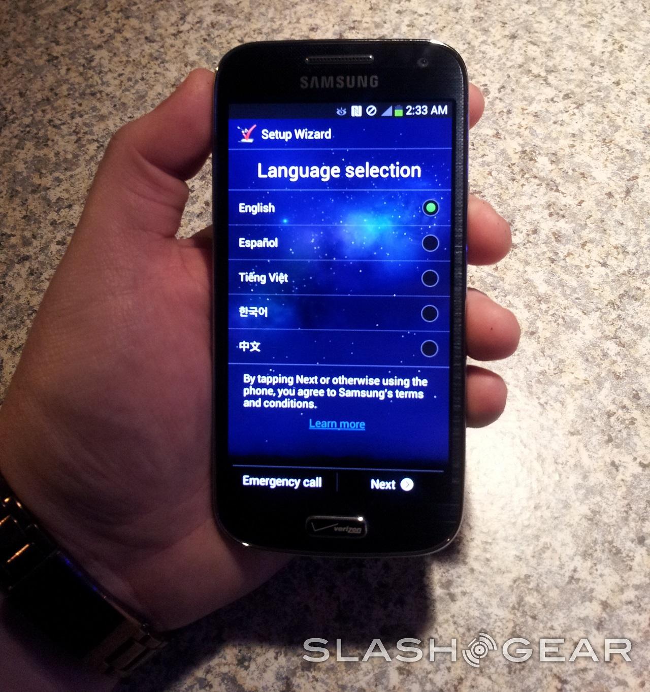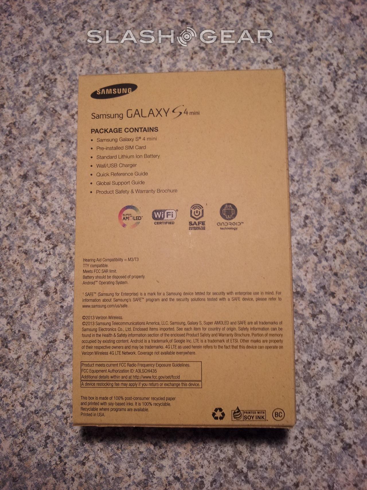 The back is glossy smooth with a tiny diamond pattern that gives it an almost grid-like visual texture. The relatively large Verizon 4G branding is stamped on the back in addition to the Verizon branding on the home button, as well as the GALAXY S 4 Mini logo branding near the bottom. The camera is a familiar square shape, and the flash is a small square positioned below it, with the speaker in the bottom left corner. As far as Galaxy handsets go, the Mini takes familiar design cues from the models before it, and so Samsung faithfuls will find the device readily familiar.