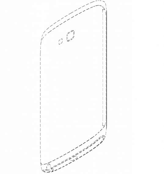 This device would take cues from Samsung's recent designs in the Windows Phone 8 department with its two-level backing as well as from the Nokia world of smartphones with a slightly flatter top and bottom. Here you'll see three light locations up front below the display and two locations above, these quite possibly pointing toward proximity and light sensors as well.