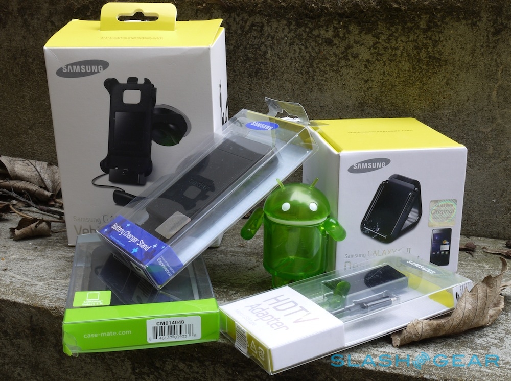 Samsung's Galaxy S II smartphone blew us away with its combination of dual-core performance, impressive Super AMOLED Plus display and super-slim dimensions, beating the HTC Sensation to the market. The company's official accessories haven't been so timely, however, but the Samsung Vehicle Dock Kit, HDTV Adapter, Desktop Dock and Battery Charger Stand are finally on the SlashGear test bench. They're joined by Case Mate's "Barely There" Tough Case, too. Check out our full review after the cut.