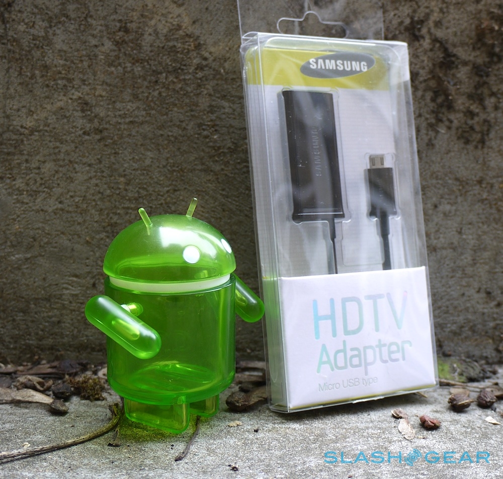 Unfortunately MHL adapters have been in short supply, and weren't on sale back when we reviewed the Galaxy S II. Samsung's official dongle is a compact affair, a thin black box roughly the size of a few sticks of gum, with a short microUSB cable to hook up to the phone and, on the box itself, a full-sized HDMI port and microUSB port.