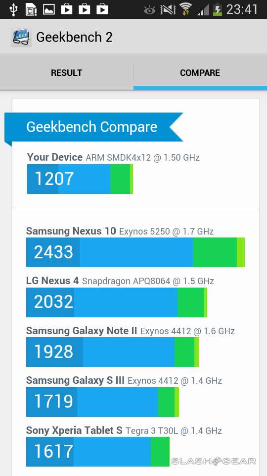 Battery life is just about the worst we've seen in this generation of Galaxy devices, if you'd like to consider everything in the Galaxy Tab 3 and Galaxy S 4 lineup. If you're planning on this being your daily driver as a smartphone, you'll certainly need to charge it up halfway through the day if you intend on getting to the end. If you're using it as a camera, you'll want to bring another battery to help you make your way through a full workday if you're at an event.