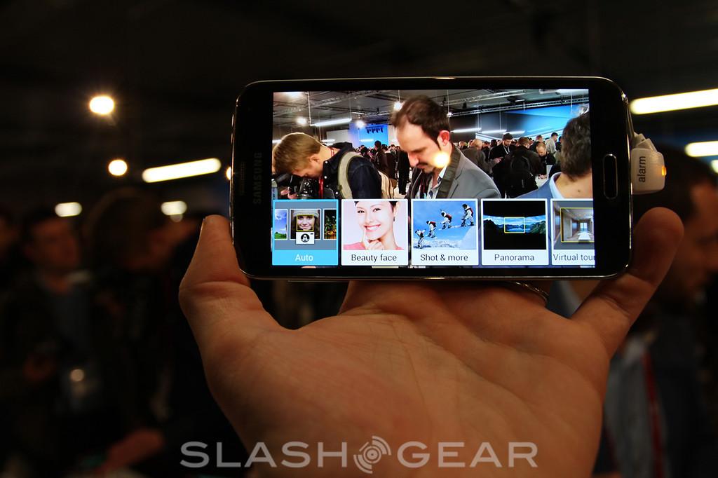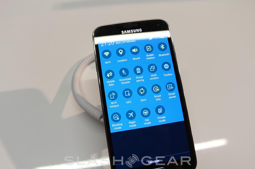 Inside, Samsung has a range of processors depending on market and LTE status – spanning Qualcomm quadcores through to hexa- and octacores – with 2GB of memory and 16GB or 32GB of storage (a microSD slot handles up to 128GB cards like SanDisk's recent whopper). There's also been some advances in wireless: Cat4 LTE for up to 150Mbps downloads, network depending, and a clever bonding technology dubbed Download Booster that runs WiFi (a/b/g/n/ac) and LTE simultaneously for up to 650Mbps downloads (and a quick way to chew through your cellular data allowance).