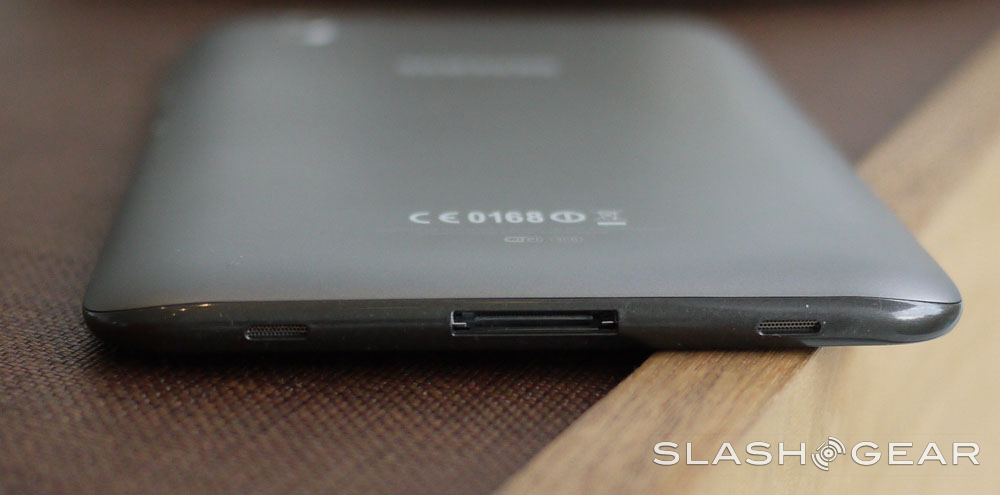 This device takes what the original Galaxy Tab had (the oldest Galaxy Tab, the one that's closest to this one in size and shape) and tosses it out the window. You'll not find a device that's closer to that one in shape than this, but the hardware inside and out are completely revamped. This device runs a dual-core TI OMAP processor clocked at 1GHz and runs a 1024 x 600 TFT LCD display with a 3-megapixel camera on the back.