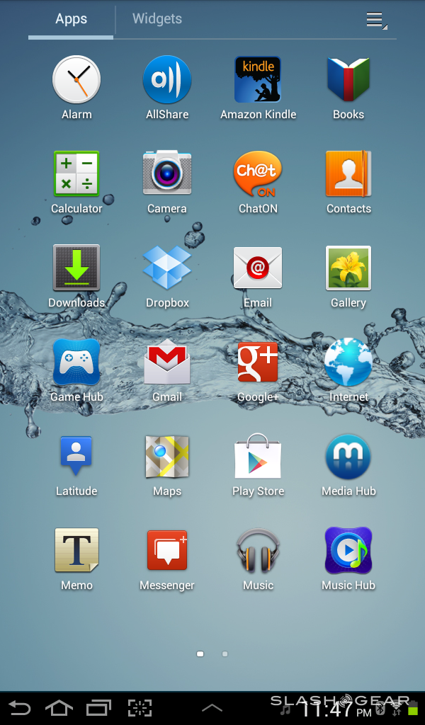TouchWiz exclusive apps sitting on top are able to be accessed with that lovely little arrow at the bottom of the display – they're working quite smooth this time around!