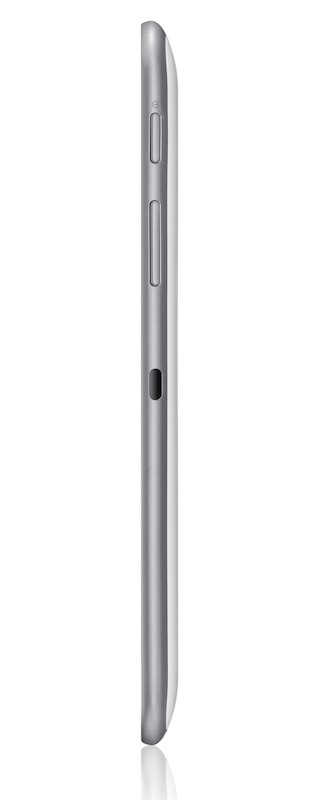 The 193.65 x 122.37 x 9.96 mm tablet tips the scales at 345g with its 4,000 mAh Li-Ion battery, and will be available with either 16GB or 32GB of internal storage; a microSD card slot will accept up to 32GB cards. In addition to triband (900/1900/2100) HSPA+ there's WiFi a/b/g/n with 2.4GHz and 5GHz support, Bluetooth 3.0, USB 2.0 (including Host support) and both WiFi Channel Bonding and WiFi Direct.