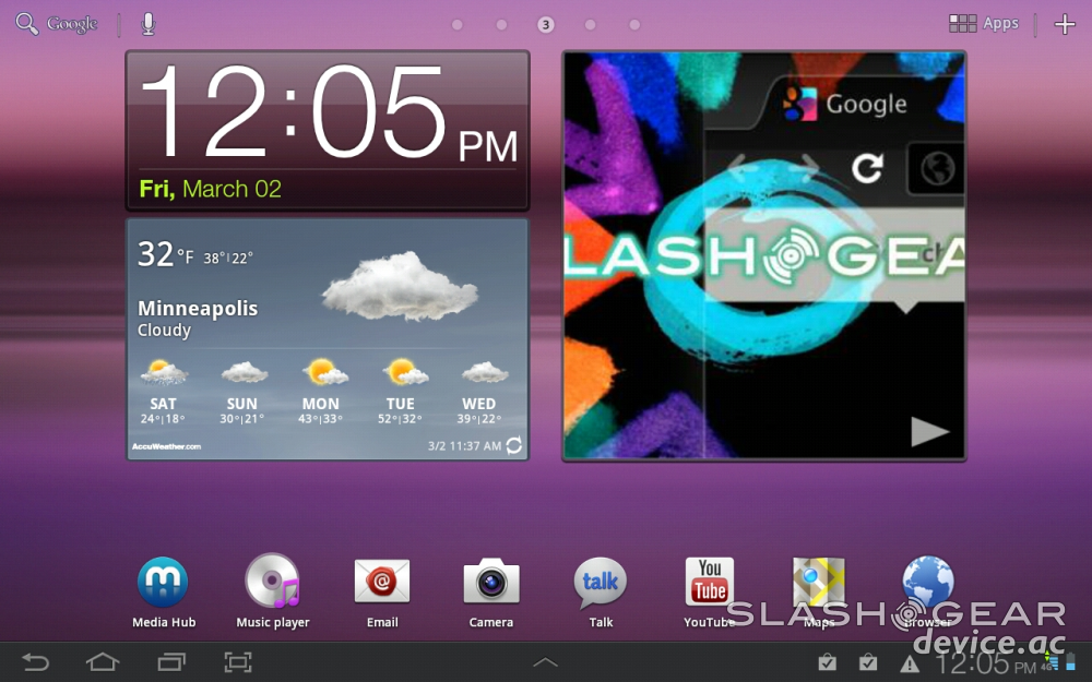 What you've got here is a software experience made specifically for the tablet, not quite Ice Cream Sandwich, but just about as close as you're going to get without getting there. Samsung has been adamant about their want to update a whole swathe of their Galaxy devices inside the Summer months, so we're hoping this device wins out in that battle as well. Meanwhile this setup is perfectly workable for your daily tablet needs. Also of note, even though it's not unique to this device: the Android Marketplace is now optimized fully for devices with displays much larger than a smartphone – so you're in business here from the top of the software experience down to the base.