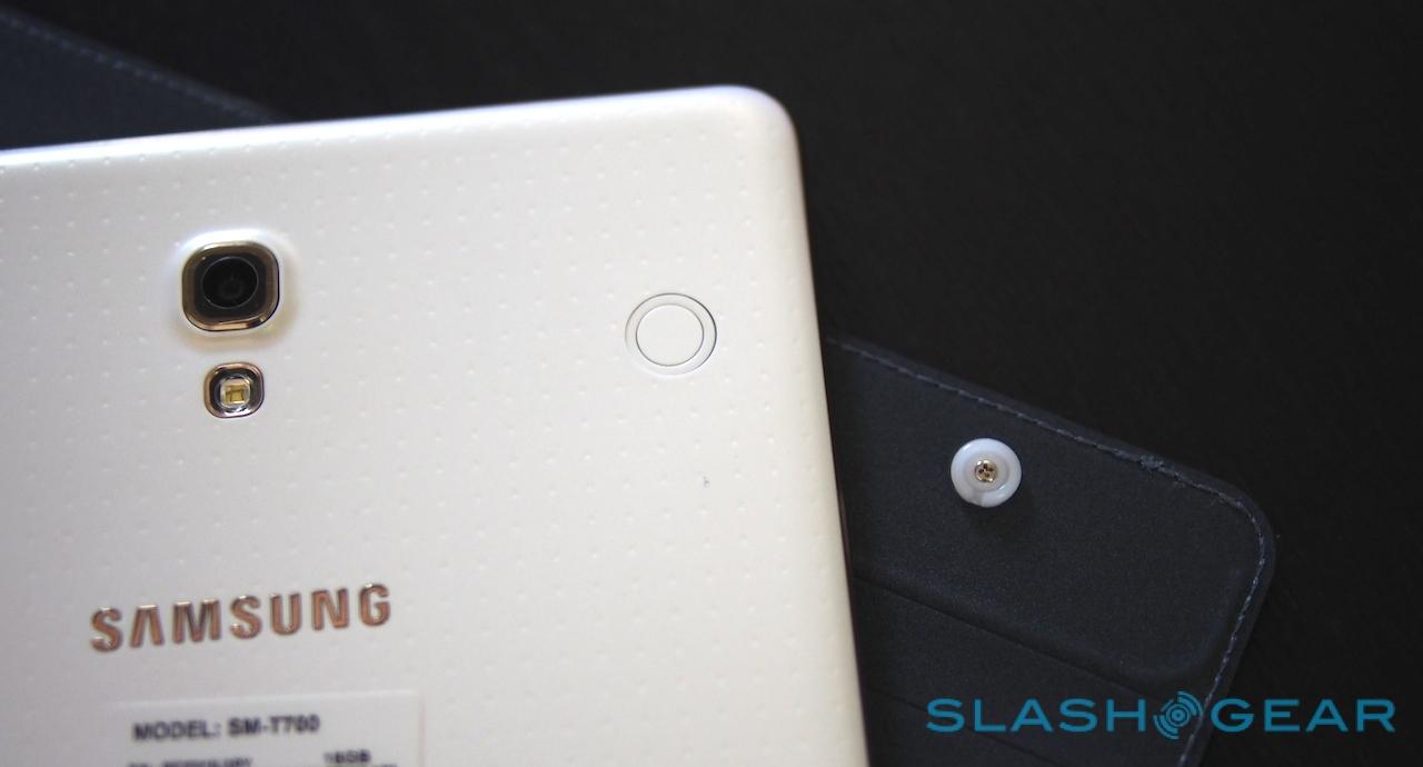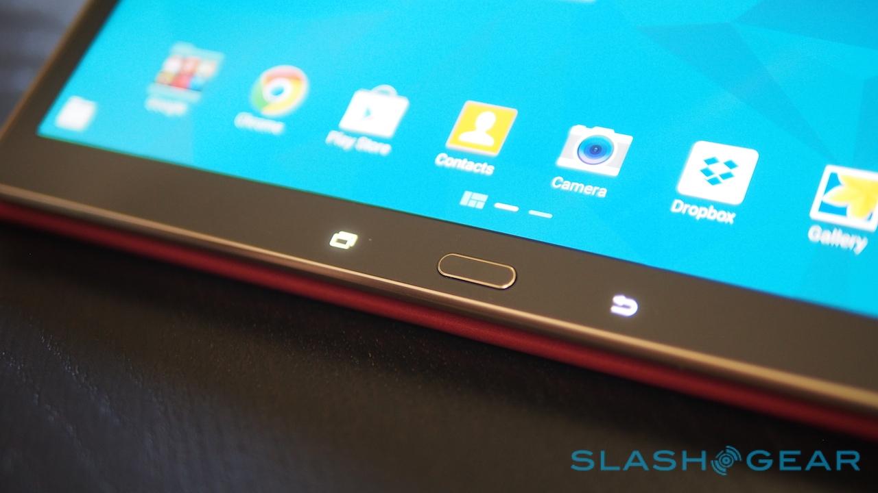 AMOLED isn't the only thing inherited from the Galaxy S5: the Tab S pair are also Samsung's first tablets to include fingerprint biometrics. As on the phone, the scanner is integrated into the home button.