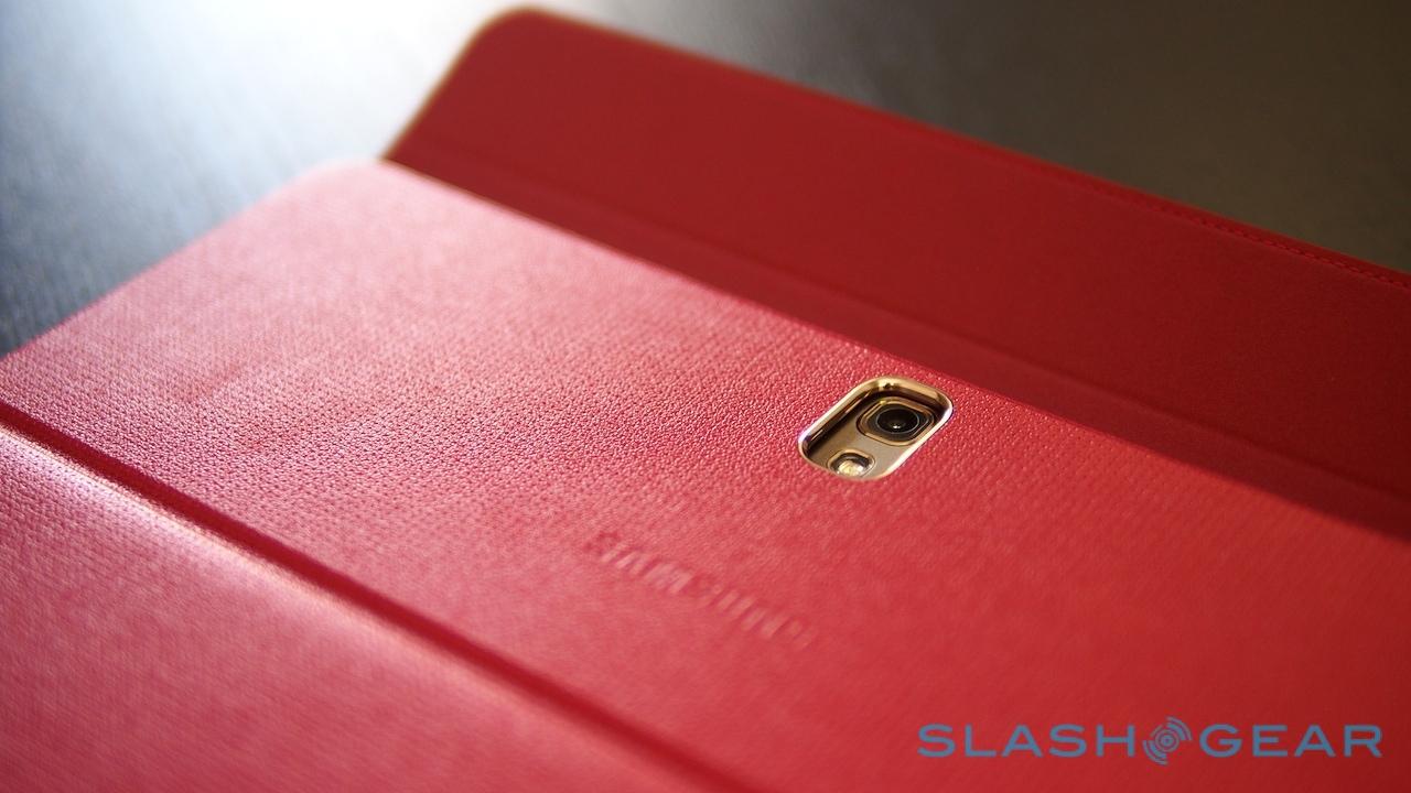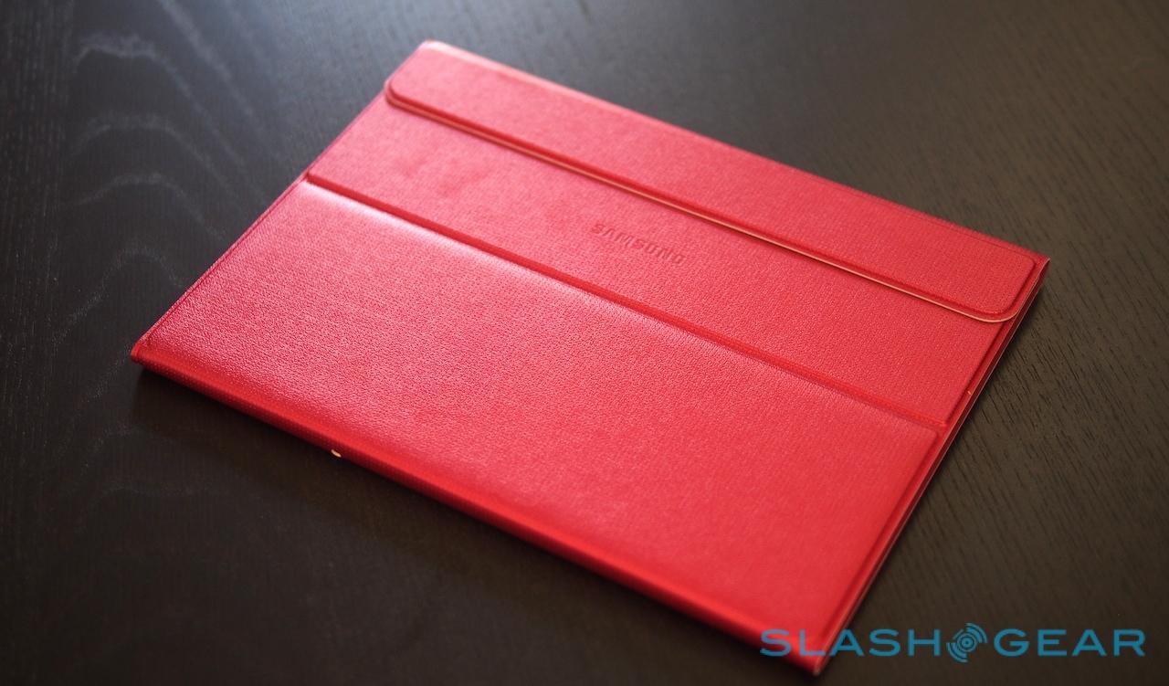 Samsung has two different styles to choose between, either the "Simple Cover" which is a basic flap that powers the screen on and off when opened or closed, and the Book Cover which can be flipped into three angles for watching video, browsing the web, or typing on the on-screen keyboard. The latter also has a useful flap-down section to quickly expose the camera lens.