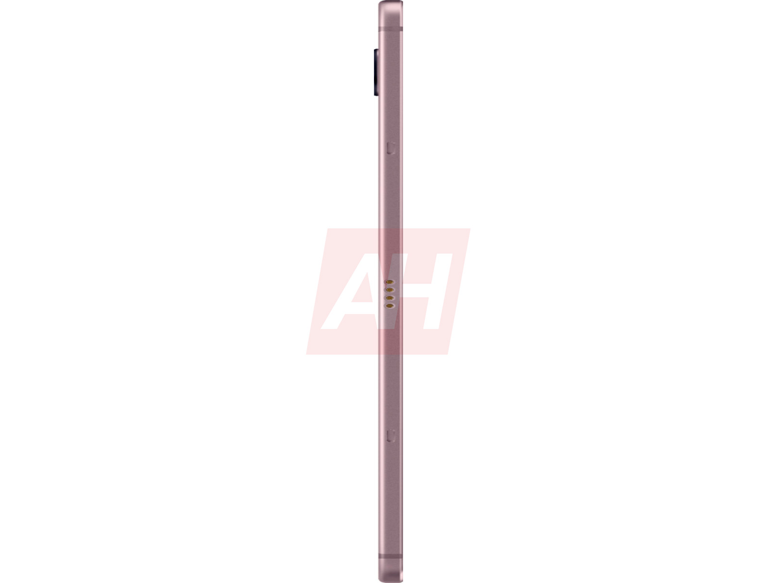 You'll see some "Sound by AKG" branding and some Samsung branding on the back of this device, and a watermark from the folks at Android Headlines. You can see a smart pogo-pin connector on the long end for connecting with a keyboard cover. You can also see a USB-C port at one of the short ends.