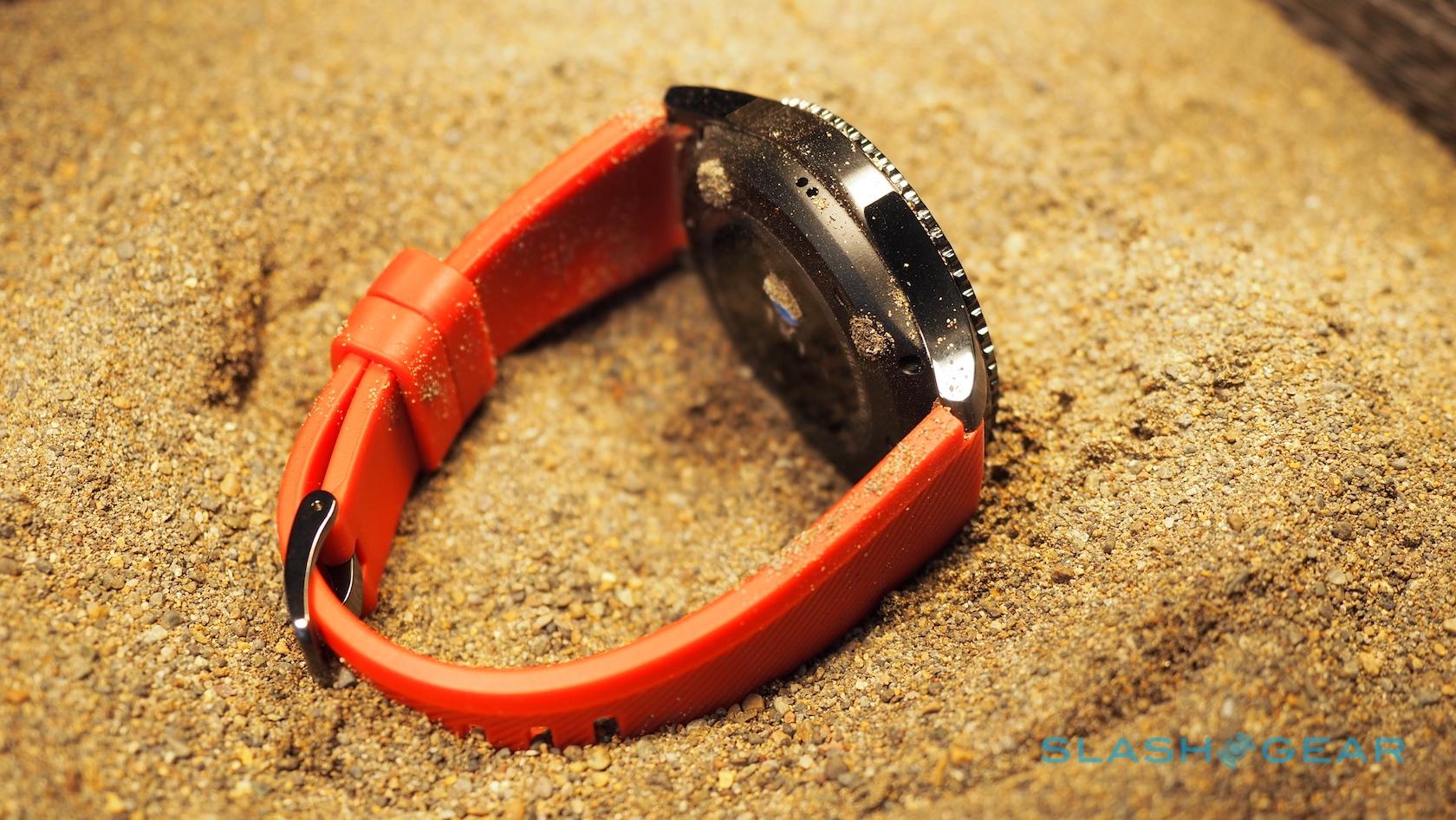 IP68 water and dust resistance is included, meaning the Gear S3 can handle up to 30 minutes at up to 10 feet underwater, in addition to extremes of temperature, vibration, and shock. Indeed, Samsung says it can be used at up to 15,000 feet, should you need to make a hands-free call while skydiving. The touchscreen is covered with a sheet of new Corning Gorilla Glass SR+, which promises to be both impact and scratch resistant.