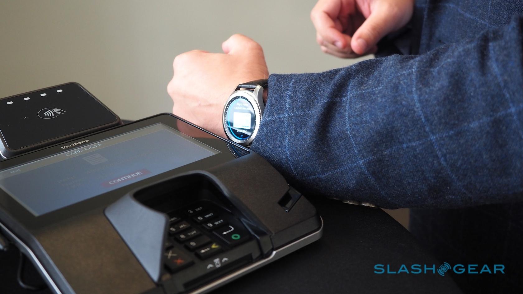Initially, Samsung Pay on the Gear S3 will be treated separately from any card you've registered on a Galaxy phone: even if you've added your credit card on your Note 7 already, you'll have to go through the enrollment process again for your smartwatch. Samsung says it's looking at changing that.