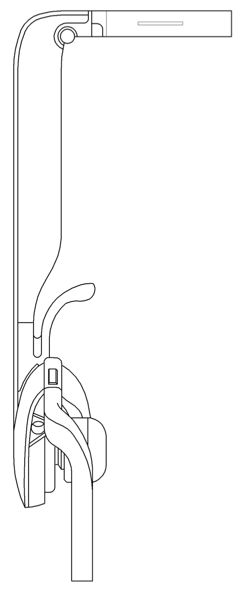 Here Samsung aims to turn the pair of glasses, as the appear with Google, into an earpiece connected to an extended piece of plastic and a piece of glass, not unlike Google's solution. So the bar that'd normally go around the front of your face and back down your other ear no longer exists.