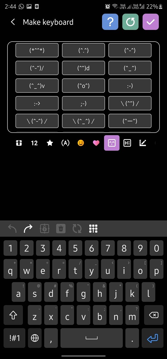 Keys Cafe actually lets you create your own keyboard, changing the layout and adding or removing keys. This will be a big help to power users, especially those that need special keys not just for sending messages.