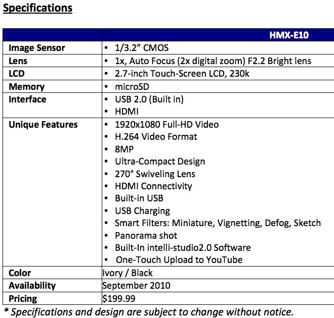 Samsung HMX-E10 Swivelling 1080p HD Pocket Camcorder Outed
