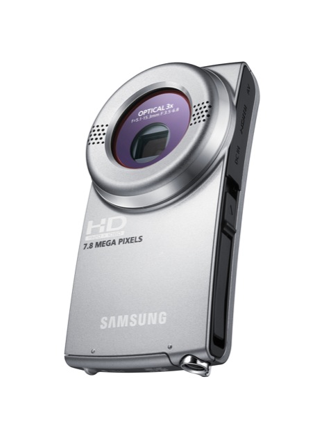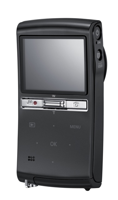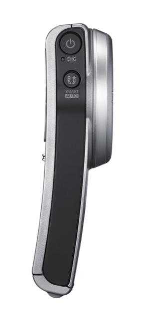 Each uses digital image stabilization and has a distinctive "seven degree" angled grip which apparently is more comfortable for longer periods of recording. Samsung's own intelli-studio 2.0 editing and processing software is stored on-board the camcorder itself, ready to be booted up whenever it's plugged into a USB port.