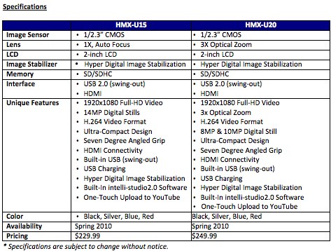 Samsung HMX-U20 And U15 Full HD Point-&-Shoot Camcorders