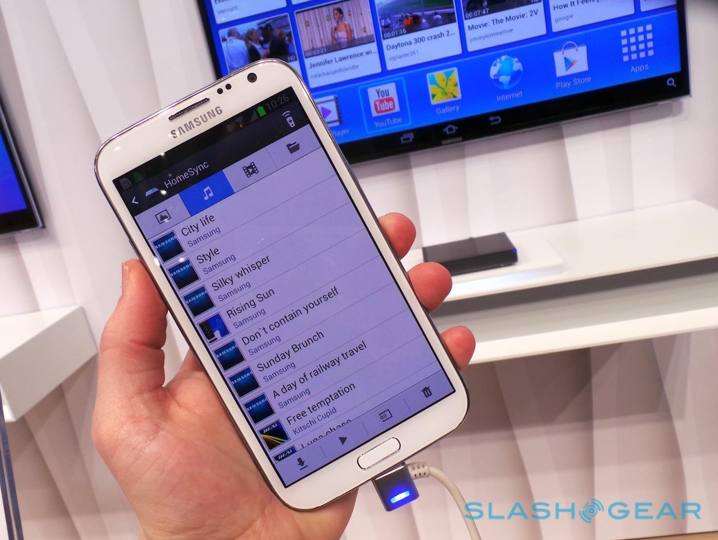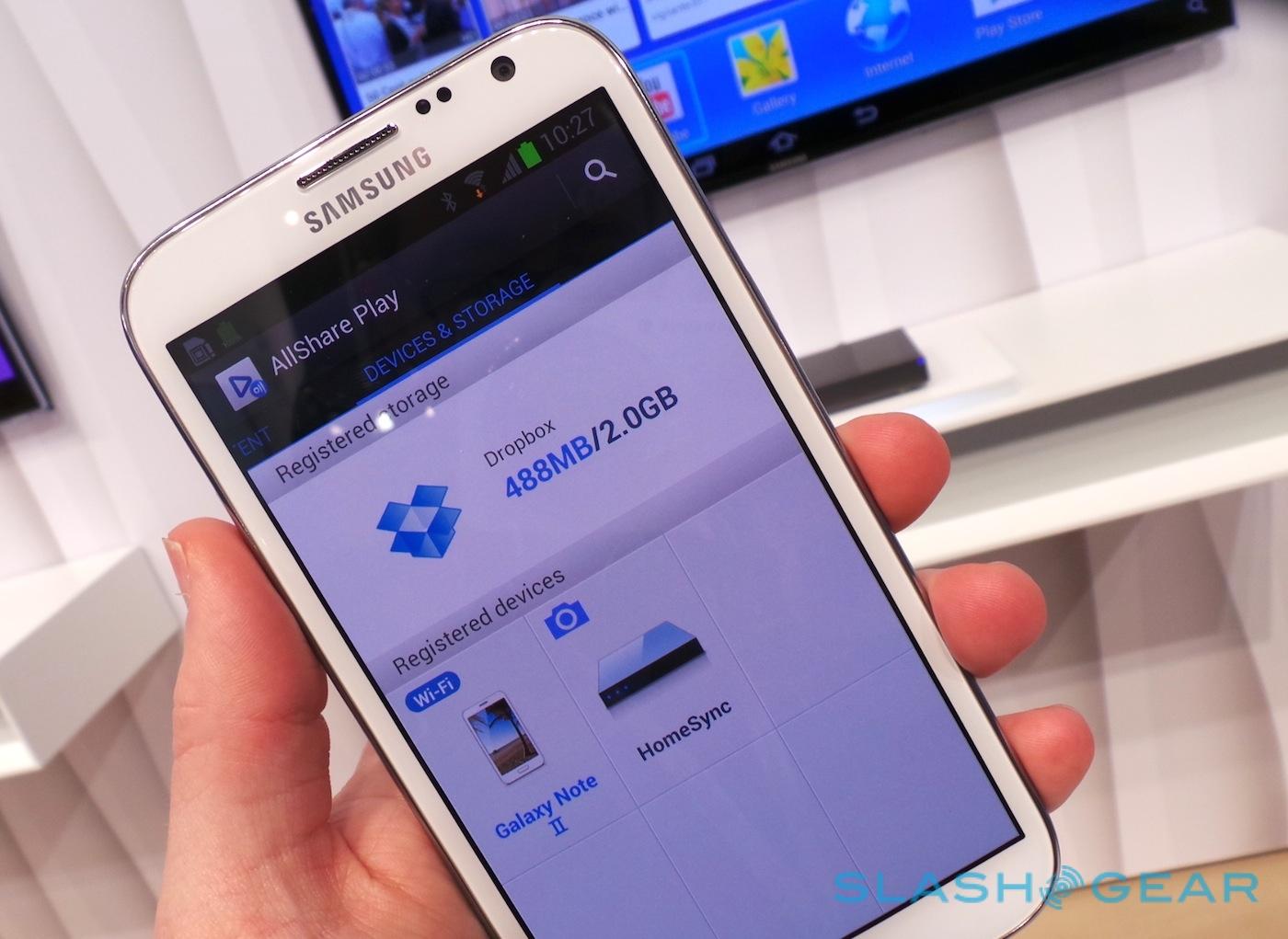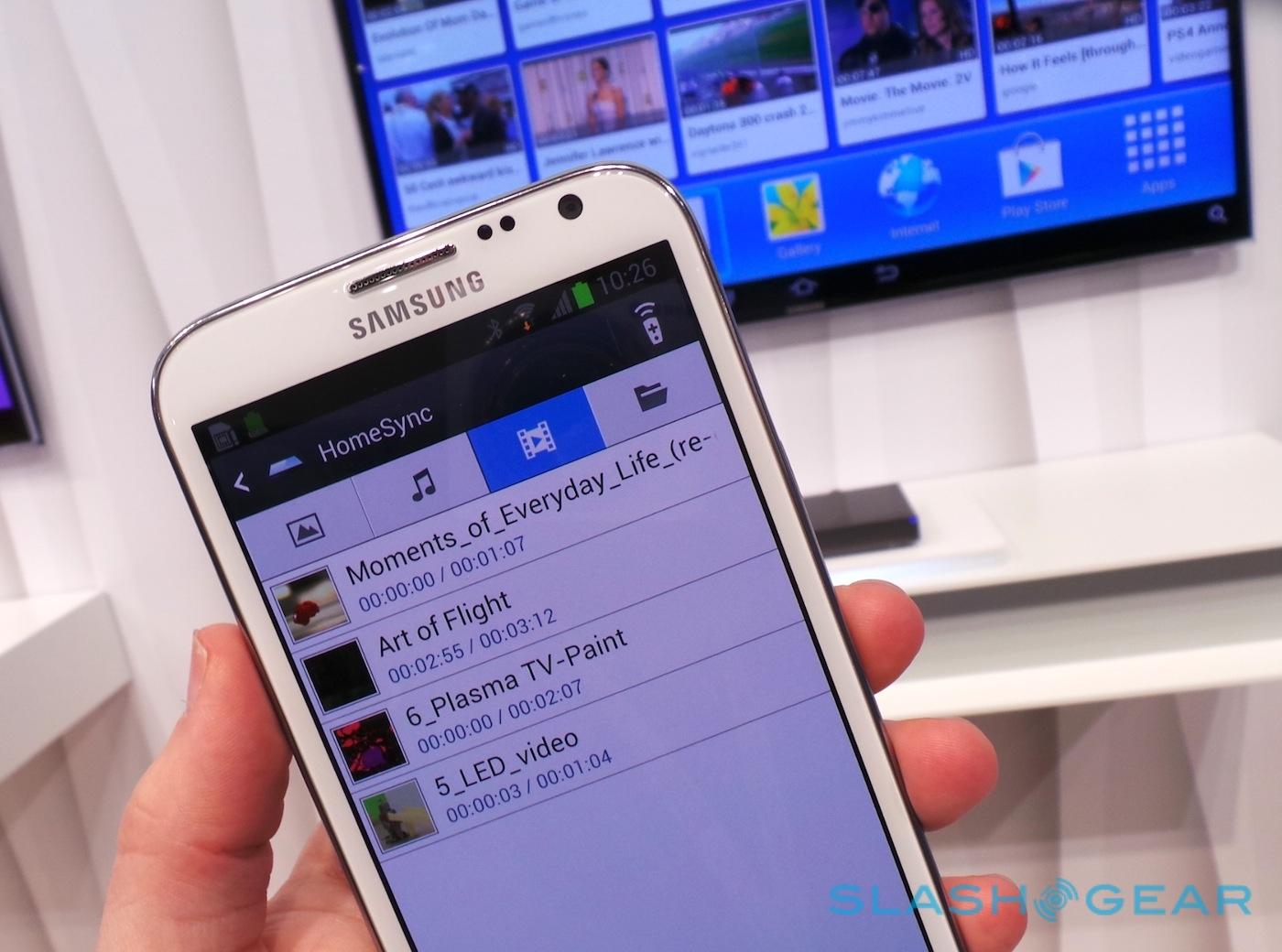 That hard-drive is used for local storage, including offloading content from your phone or tablet, though as you'd imaging the HomeSync is also set up to stream from the cloud. It integrates with the AllShare app on Samsung mobile devices, too, for one-touch streaming, though we had a little trouble getting a Galaxy Note II to push photos and video directly to the connected TV.