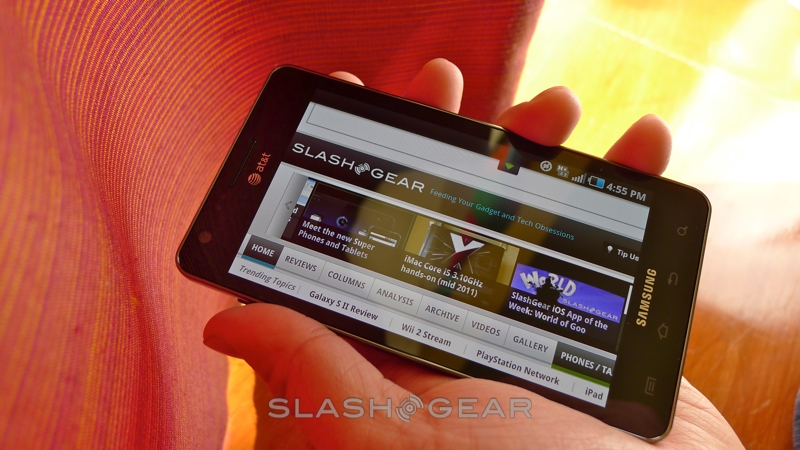 The display and the slimline chassis are the two most obvious elements, and indeed the Infuse 4G is a combination of several well-esteemed Samsung devices of recent weeks. Just as on the Galaxy S II and DROID Charge, the Super AMOLED Plus – with its 50-percent extra sub-pixels – is eye-searingly bright, color saturated and clear. It may not run at qHD resolution but its WVGA is crisp and smooth.