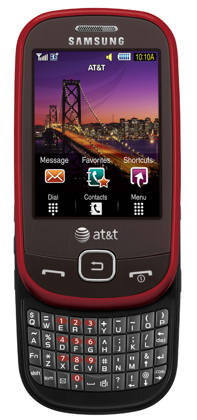 Samsung's latest AT&T cellphones, the Samsung Mythic and Samsung Flight announced last month, will both go on sale today. Each handset has a touchscreen and the Flight throws in a slide-out QWERTY keyboard; neither are going to cause as much excitement as a proper smartphone, though, and the Mythic's support for Samsung's TouchWiz UI will seem like little consolation when your friends are taunting you with Android.