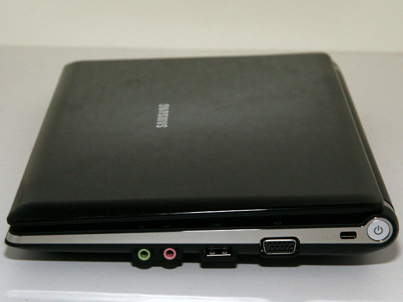 Unlike some manufacturers, who just change the lid color, when Samsung say black they really do mean it. The lid, chassis, keyboard and trackpad are all black, with the silver accents on the side panels and hinges remaining; meanwhile the blue version has a blue chassis and lid, but the keyboard is black. Inside it's the same story as the white NC10, with a 1.6GHz Intel Atom CPU, 1GB of RAM and 10.2-inch display.