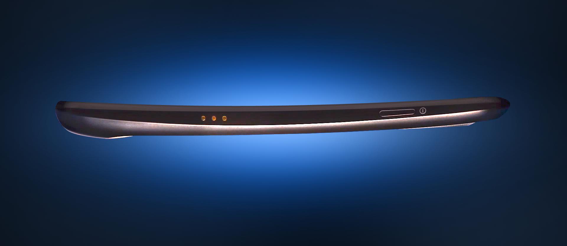 I believe that the screen's curve is much LESS extreme than Samsung's teaser video might lead us to believe. If you look closely, there is a light-gray bevel at the far ends (by the top and bottom of the phone) that the blue line heavily overlaps in the middle.