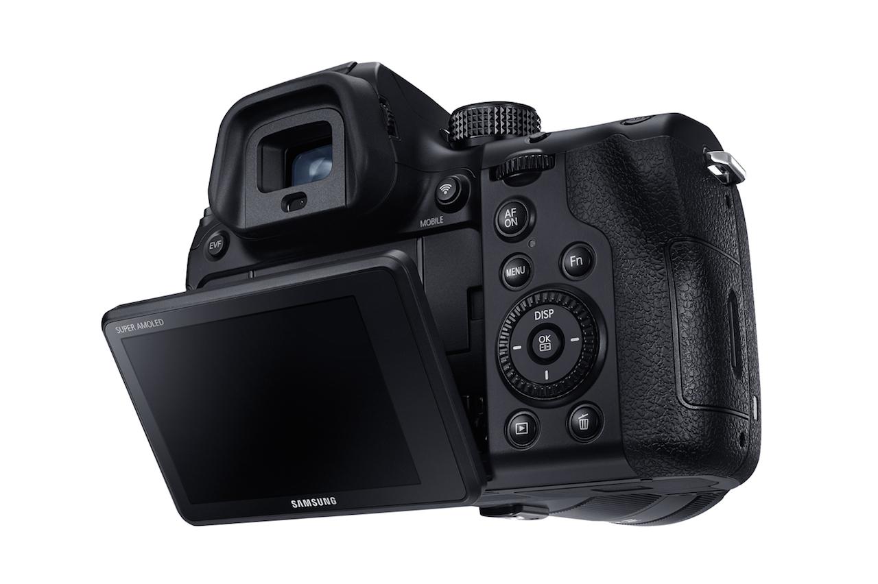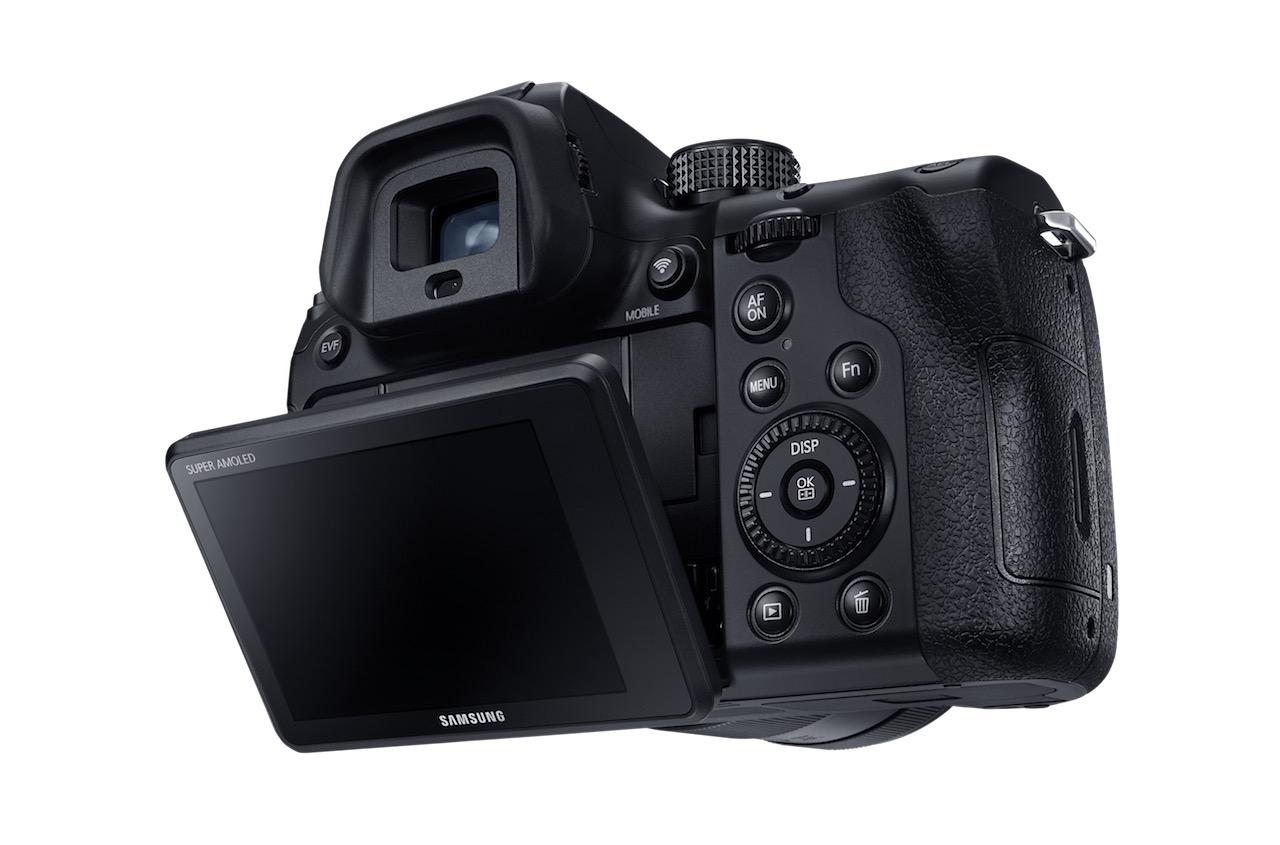 A built-in flash, XGA resolution OLED electronic viewfinder, and a 3-inch Super AMOLED 720 x 480 touchscreen with tilt round out the key elements of the dust and splash resistant camera.
