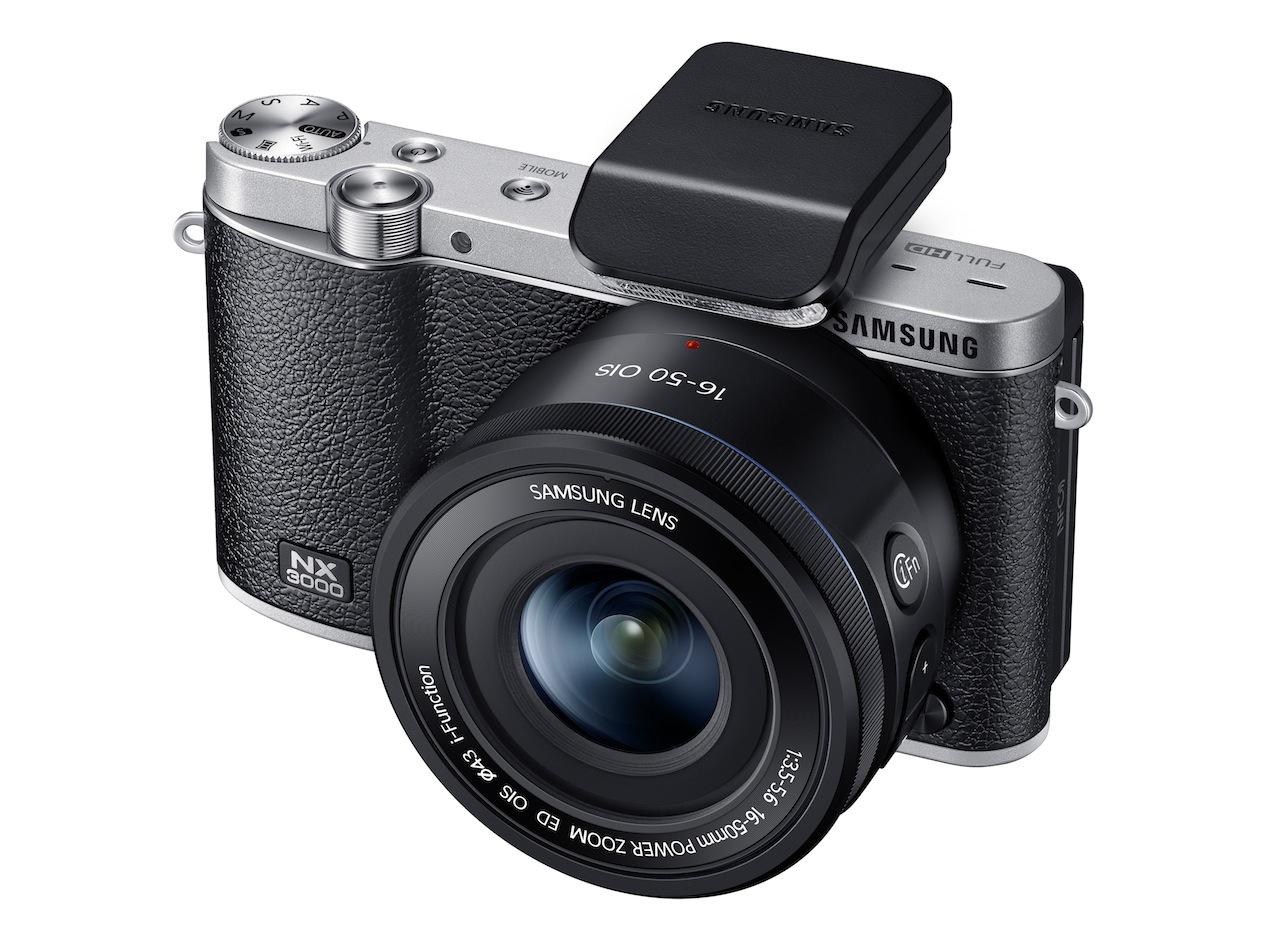 There's also a new compact 16-50mm F3.5-5.6 Power Zoom ED OIS lens, the zooming of which can also be controlled remotely through the smartphone app. The NX3000's flash is a detachable unit.