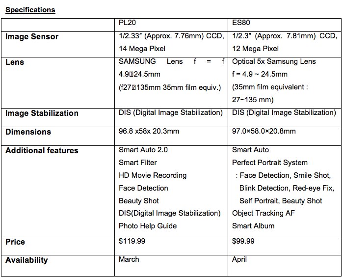 Samsung PL20 And ES80 Budget Point-And-Shoots Revealed