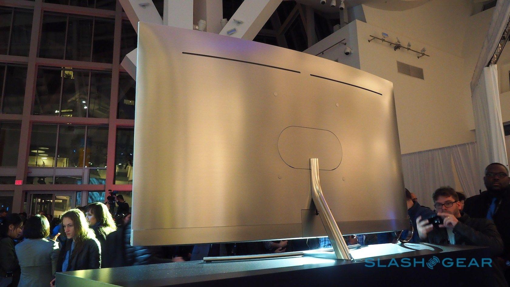 Above you'll see one of the flat screen QLED models from afar. Below you'll see a couple of curved models as well as another flat version a bit closer. It's difficult to describe the experience in seeing one of these TV sets in person – it's almost unbelievable. As if TV-bound display panels are being made so good, so fast, that it feels like Hollywood isn't prepared to bring on content worthy of the tech.