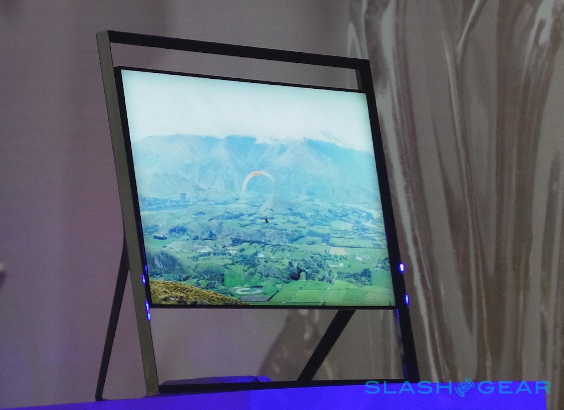 Inside the 85-inch behemoth, there's not only 2D to 3D conversion, but HD to UHD conversion, along with Smart TV features like streaming, apps, motion control, and voice control. It's all powered by an A15 quadcore 1.35GHz processor, something you'd more commonly expect to find in a high-end phone or tablet, as well as support for the Smart Evolution Kit which will add new features further down the line. However, it's likely to unusual easel-style mount which will grab the most attention (at least before the screen gets powered on).