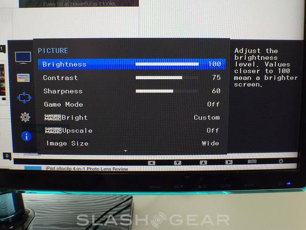 D-Sub and HDMI are your input methods here, and the monitor is usable for both Windows and OS X. Scaling can be an issue, especially with Windows, but this monitor does something really handy. Samsung calls it "magic upscale technology", which sounds a bit silly. It works like a charm, though, scaling images from a smaller screen to its larger one with no degradation or warping. You see it on your laptop, and it will be the same on the larger screen — it's just that simple.