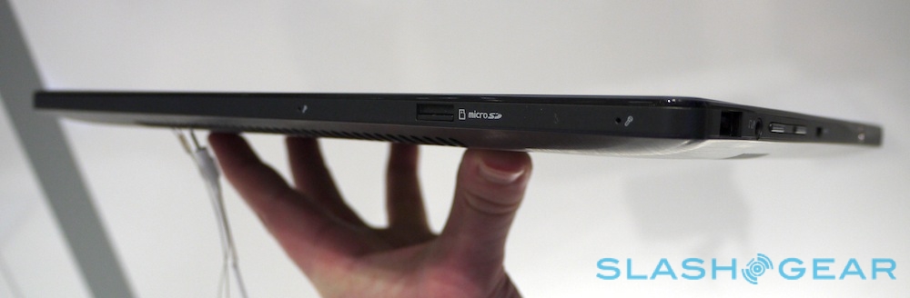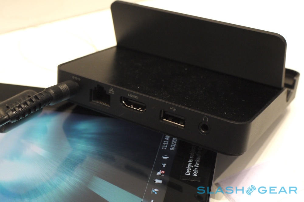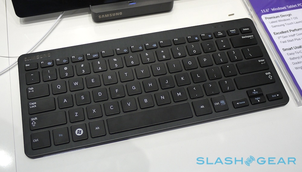 If you want more ports, the docking station has a full-sized HDMI (versus the mini port on the Slate PC itself) as well as a USB, headphone socket, ethernet and power. Unfortunately it's not adjustable for angle, though you could easily leave a bigger display permanently attached for when you're back at your desk. The Bluetooth keyboard is much like we saw on the Series 9 Chronos laptops, but because this is a full Windows PC you can of course plug in any USB peripheral you want.