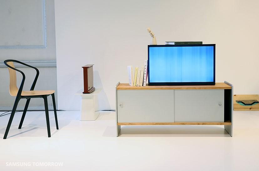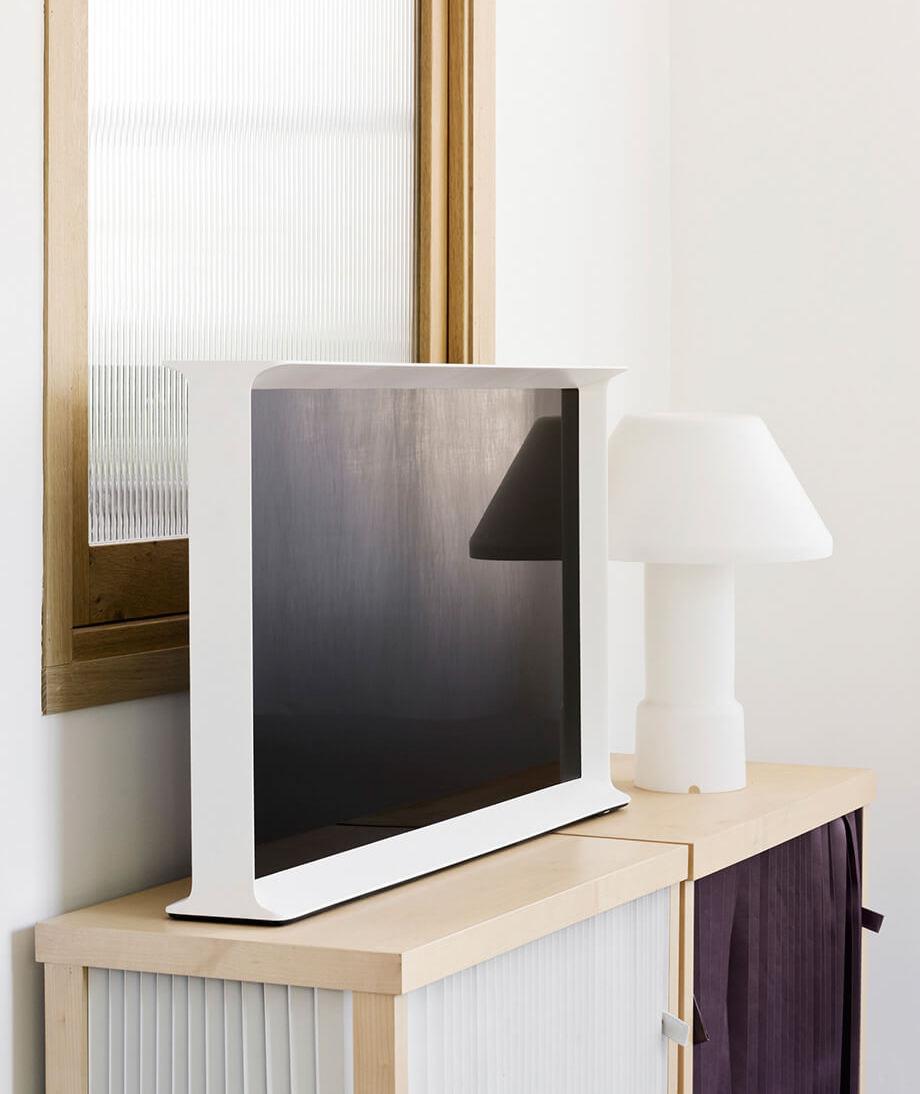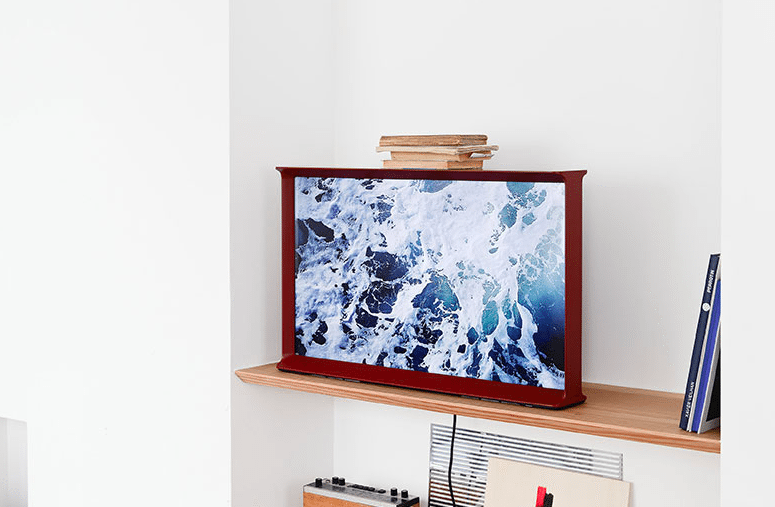 The TV's display looks like it's been placed inside a traditional picture frame. The whole thing is meant to turn the television into something like a piece of furniture that adds to a room's decor, instead of being an appliance that sits on top of furniture.