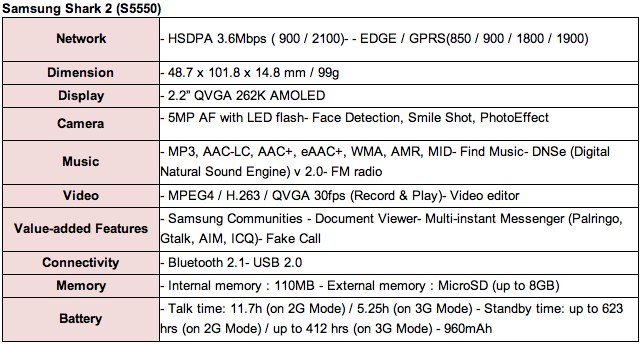 Samsung Shark S5350, Shark 2 S5550 And Shark 3 S3550 Social Networking Phones Debut