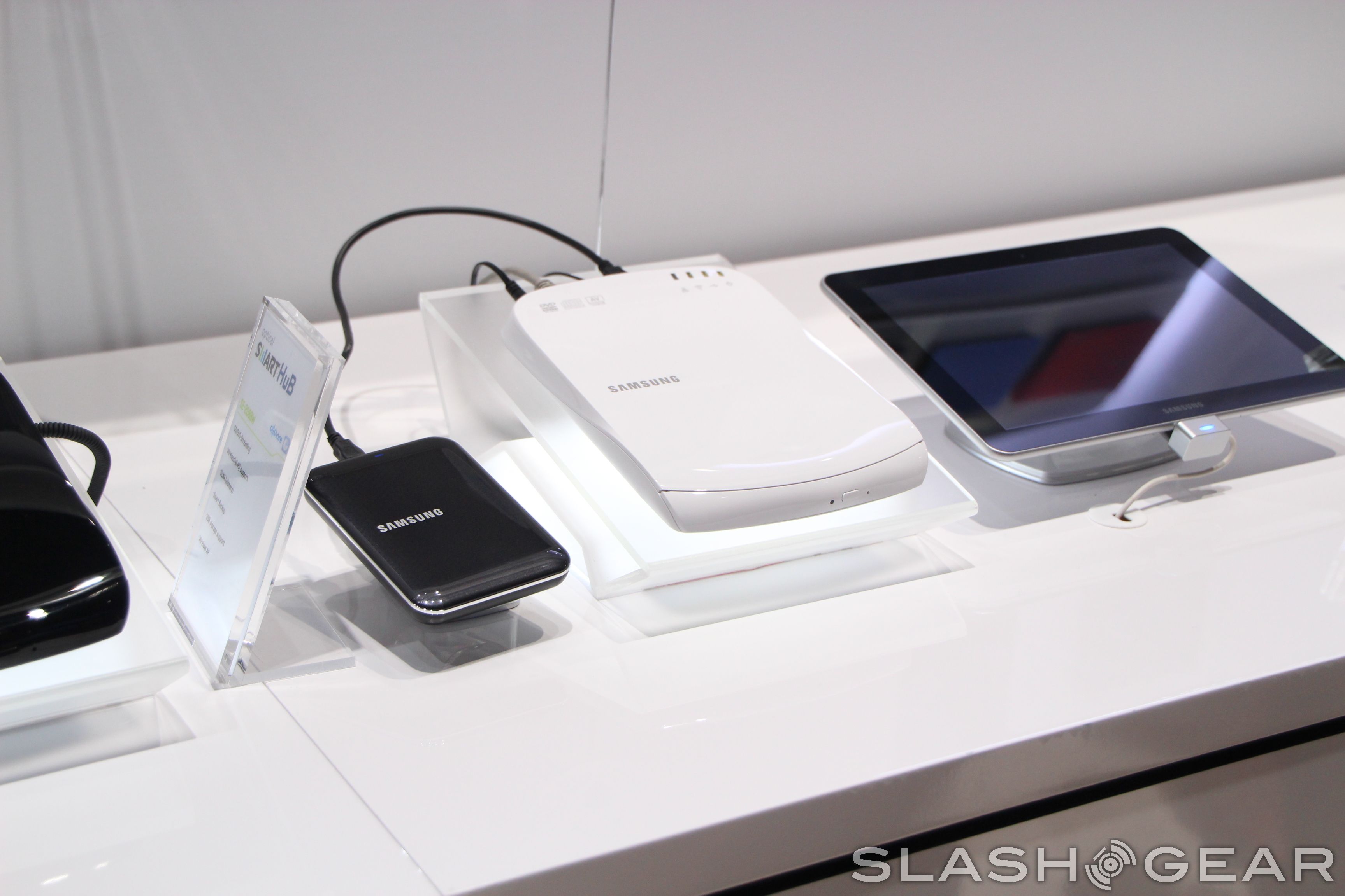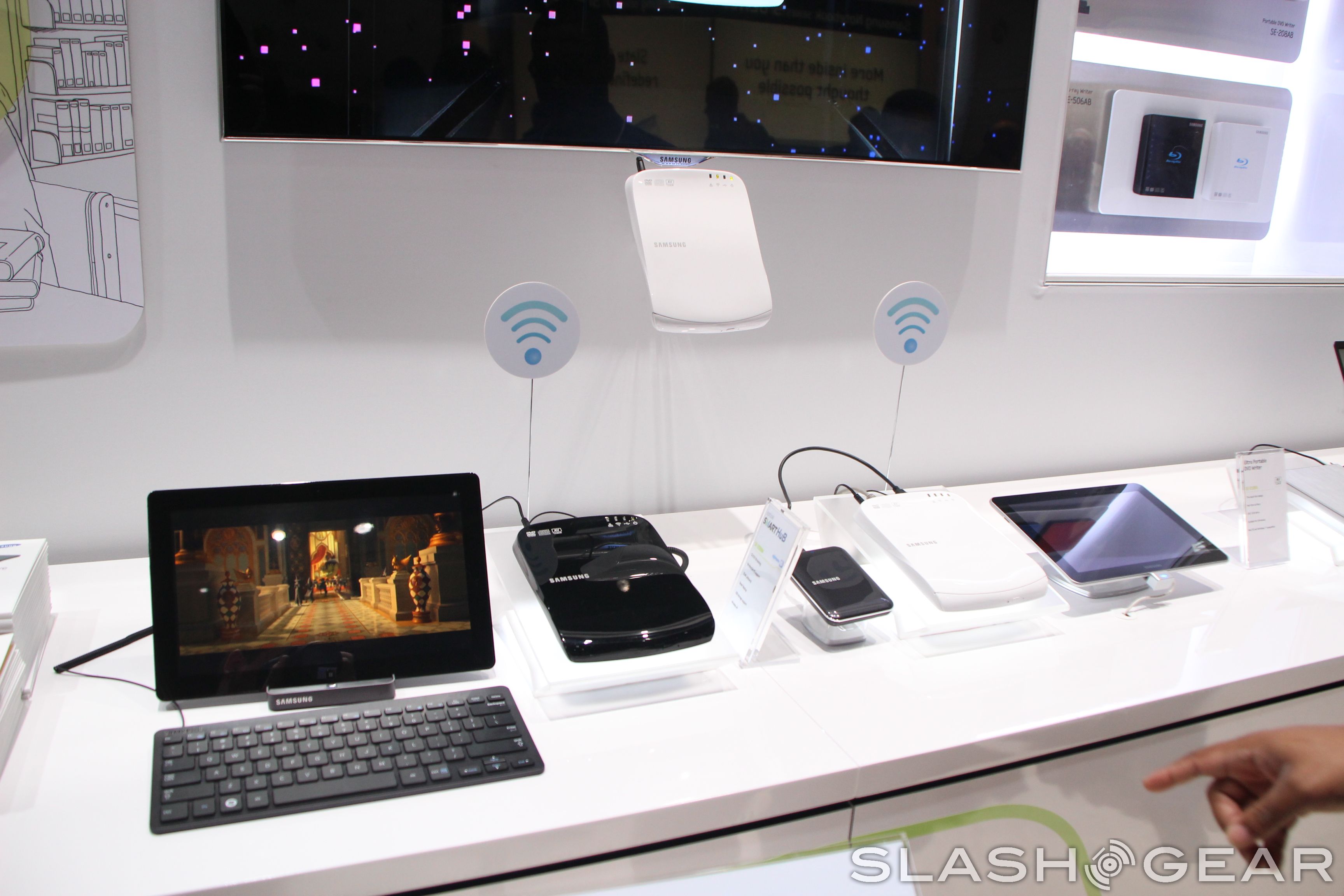 There's a decent selection of WiFi gadgets here at CES, and Samsung seems to be combining a little of the old and the new. Their new SMART Hub combines an external DVD disc drive and a conventional WiFi router, allowing connected devices to stream DVD movies and CD music across the local network. In a time when more and more Ultrabooks, netbooks and the like are making do without an optical drive, this could be an extremely useful addition.