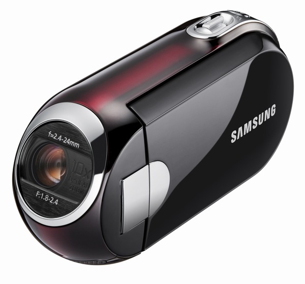 Touch of Color was always too slick to be restricted to Samsung's TV ranges, and the company obviously agrees: the new Samsung SMX-C14 and SMX-C10 camcorders get the glossy red accents across their slickly-curved casings. Announced today, the pair each have Hyper Image Stabilization, 2.7-inch flip-out 230,000 pixel displays, and Samsung's Active Angle Lens which allows for a "more relaxed" shooting angle.