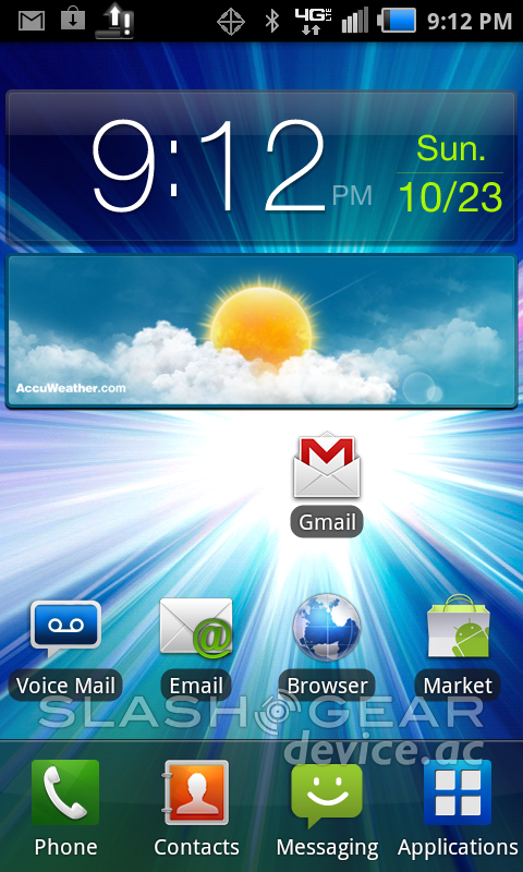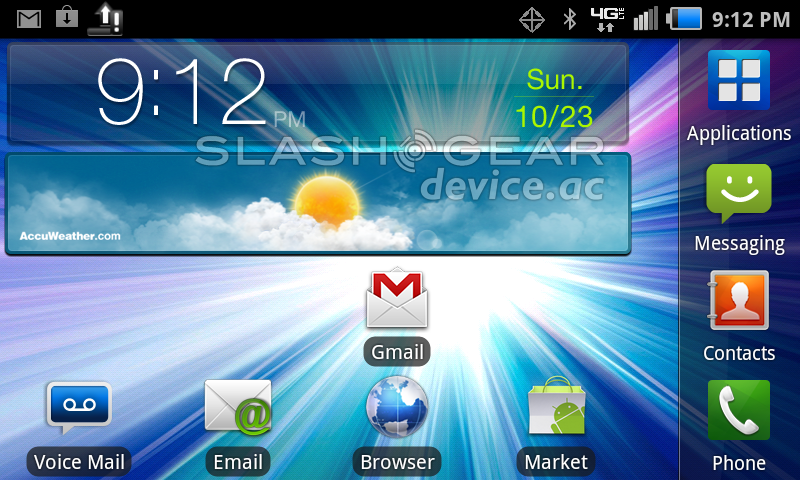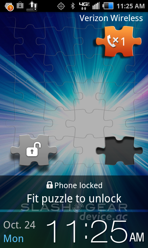 Samsung runs a user interface over stock Android that's called TouchWiz. This iteration of TouchWiz is not the most advanced of all Samsung devices released thus far, that'd be the Galaxy S II here in the USA, but it's fairly decent. It's slick, customizable to a degree, and has that ever-so-enjoyable puzzle unlock that you may have heard of if you've ever seen TouchWiz in action before. What it consists of is a set of puzzle pieces running across your screen, each of them corresponding to a phone call you've had, a message, or any number of alerts, including a simple path to your homescreen – the rest, when pulled and placed in the correct open puzzle piece hole, lead to the corresponding app.