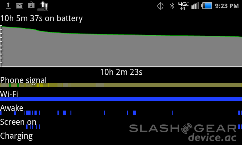 Like several Samsung devices we've seen very recently, Galaxy S II devices included, the standby time on this smartphone appears to be pretty good. It's certainly not the best handler of battery on earth, (that's still the Galaxy S II, for those of you counting,) but it's pretty good. Have a peek at this example of a normal medium-use day of the device here: