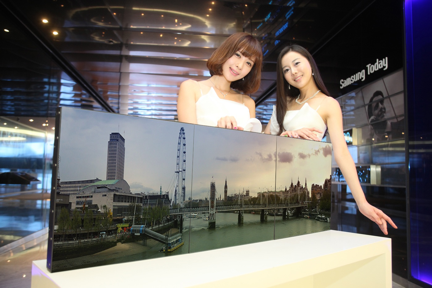 Samsung is hoping buyers see right through its intentions with its latest display, a transparent screen designed for advertising as well as creating huge multi-panel installations with minimal bezel gap. The Samsung UD22B measures in at 21.6-inches, but unlike most current screens uses a square 1:1 aspect ratio rather than traditional 4:3 or widescreen 16:9. That, along with a mere 5.5mm gap between screens when lined up, means a display wall you can simply tile into place.