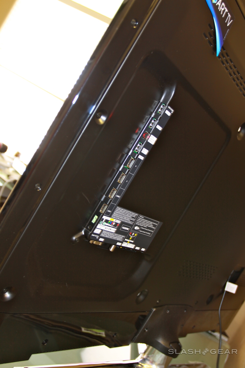 Connectivity includes four HDMI inputs, three USB ports, component and composite inputs, a D-sub PC input, 3.5mm audio input, optical digital output and a 3.5mm headphone socket. Networking is catered for with both ethernet and integrated WiFi. There's obviously an ATSC/Clear QAM tuner, too. Because of the skinniness of the set, Samsung hasn't had room to fit side-mounted inputs, so plugging in USB drives or camcorders is a little more tedious than it could be.