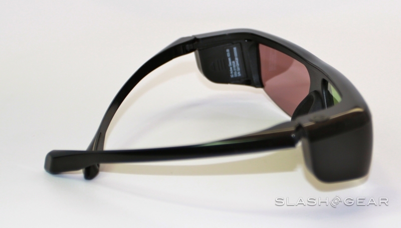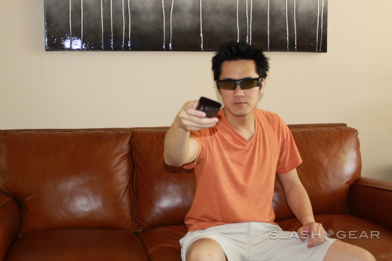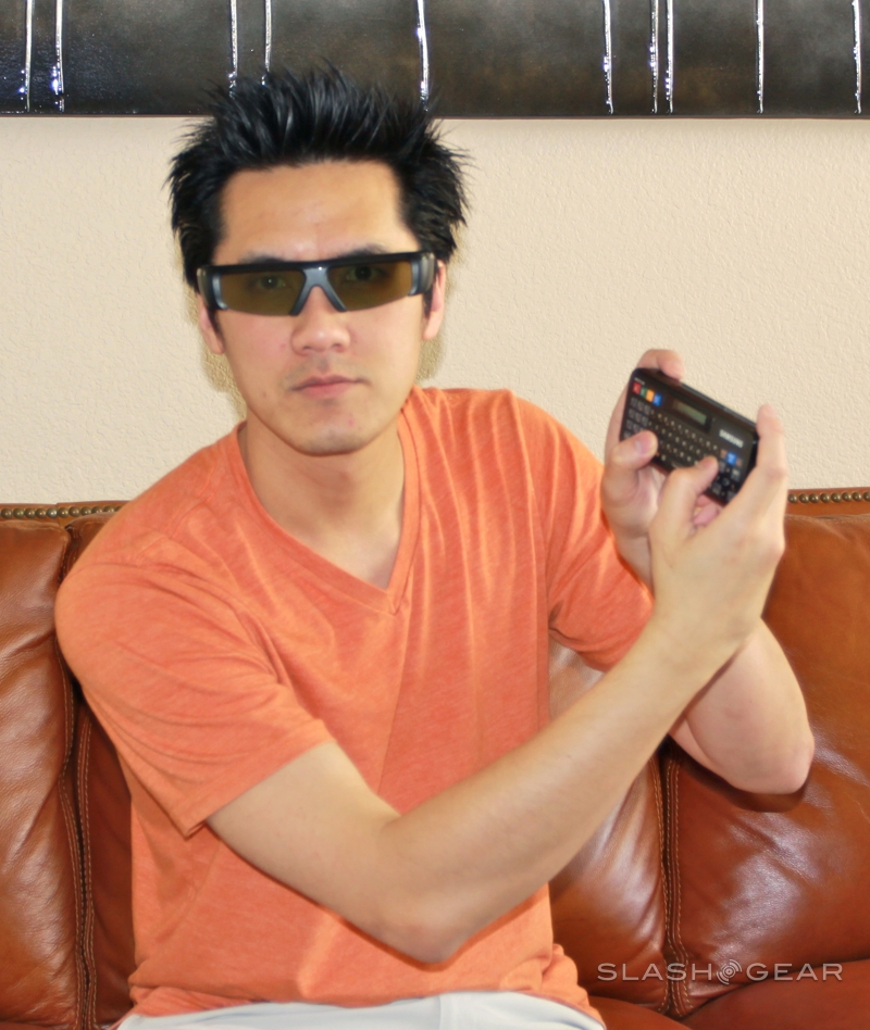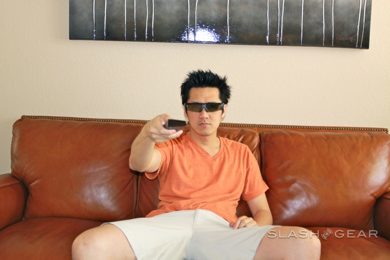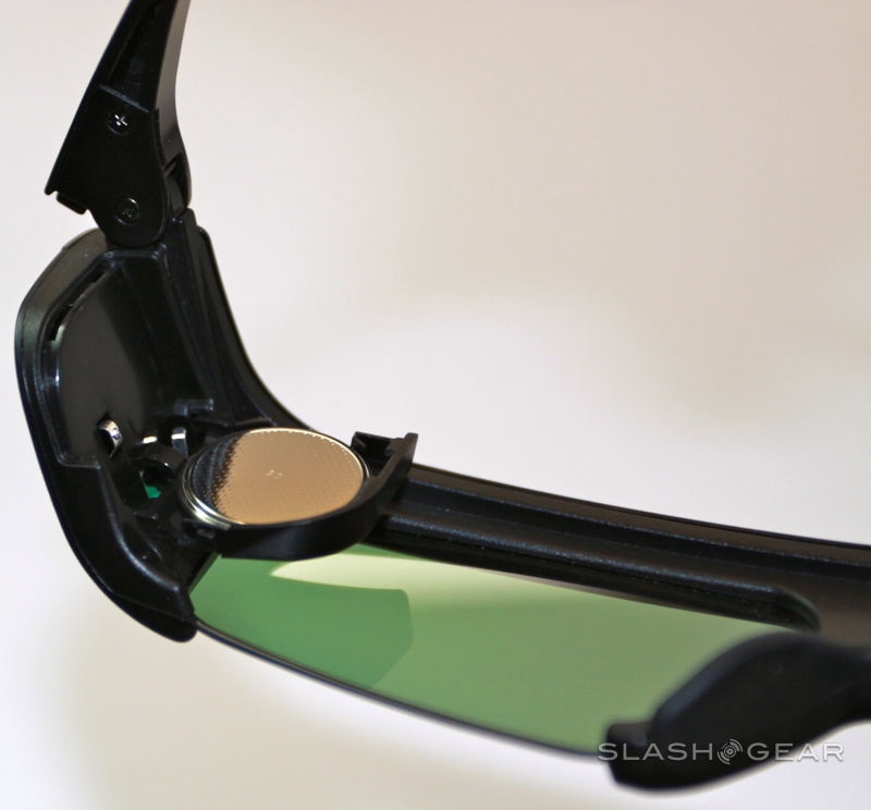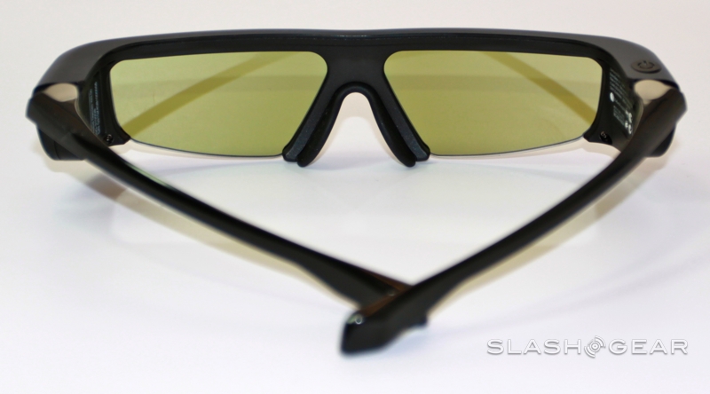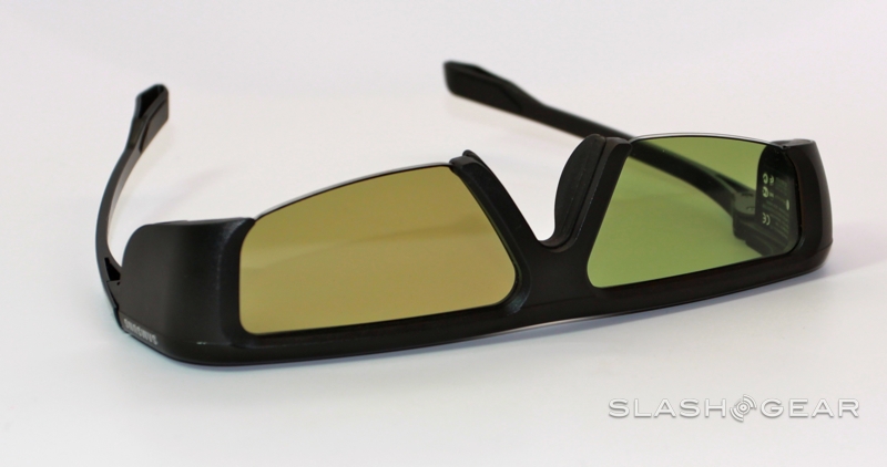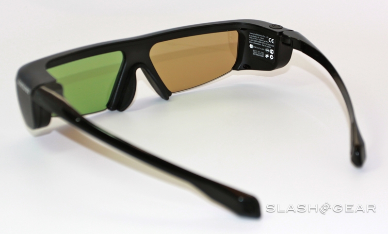 Samsung throws two pairs of its new 2011 series SSG-3100GB active-shutter 3D glasses into the box which shift the battery from the hinge sections to the tips of the arms for better balance (additional glasses are $49.99).