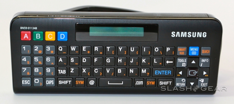 More interesting is the remote control, a double-sided affair that has regular controls on one side and a QWERTY keypad on the other. There's even a tiny, single-line monochrome display so that you can type without needing to look up at the D8000. If you have other Samsung A/V kit (and assuming it's fairly recent) you can use the company's Anynet+ technology to control everything HDMI linked with that one, single remote.