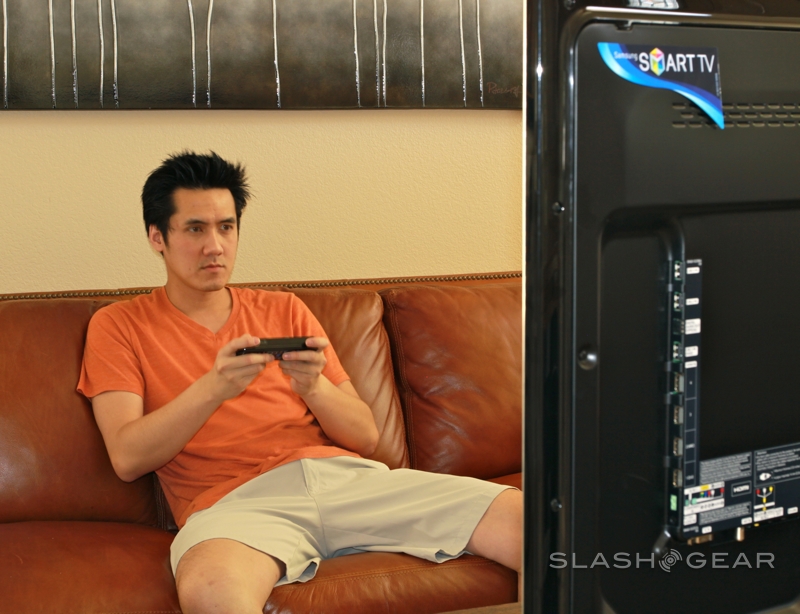 There's also AllShare DLNA streaming support, just as we've seen on Samsung's recent Galaxy range of tablets and smartphones, and Skype support with the optional Smart TV CY-STC1100 camera. That promises 720p HD 30fps video chat, though it was not included with our review system. If you have a Galaxy device, Samsung offers a remote control app in its own download store, which turns the phone or slate into a replacement remote control complete with QWERTY text input (that takes advantage of Android's voice recognition and text auto-correction, too). An imminent update will add the ability to stream video from the D8000 to the Galaxy device; right now, you can use AllShare to browse content stored on the Galaxy from the TV.